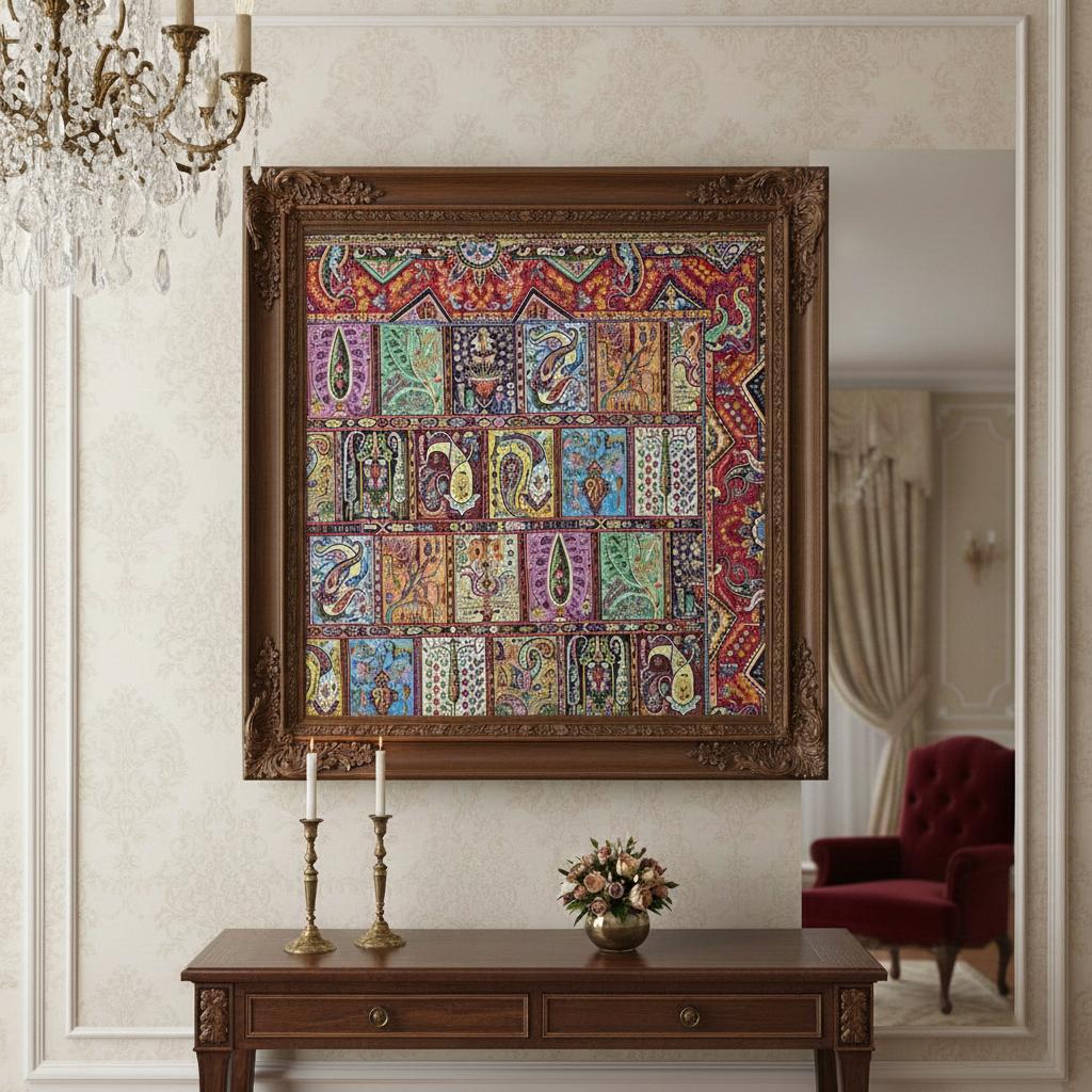 تابلو ترمه اصل ابریشم 14 رنگ طرح دیوان خشتی
