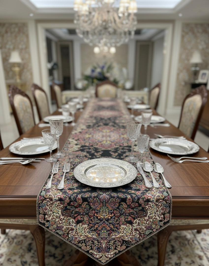 رومیزی رانر ترمه هاشمی طرح شورانگیز با جنس ابریشم در تنوع رنگی 40 رنگ و ابعاد 50 در 170