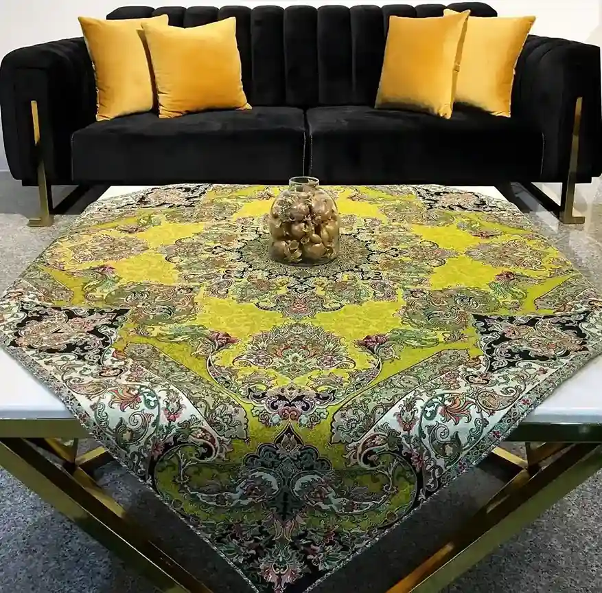 رومیزی لوکس از جنس ابریشم در ابعاد یک در یک با طرحی زیبا و جذاب در تنوع رنگی 40 رنگ