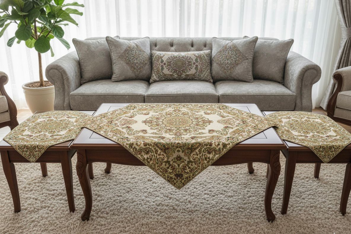 رومیزی ترمه اصل ابریشم طرح شور انگیز
